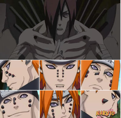 佩恩:PAIN。凝聚了三个孩子的痛苦,而变成了让世间一切感受痛苦的恶魔。